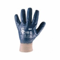 Povrstvené pracovní rukavice s pružným nápletem na zápěstí. Vrstva nitrilu pokrývá dlaň, prsty i hřbet ruky.Bavlněné rukavice CXS máčené v nitrilu, modré/bílé