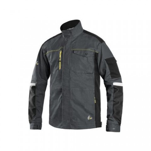 Pánská montérková blůza, strečová tkanina umožňující volný pohyb, ramena vyztužena 600D polyesterem, rukávy s nastavitelnou manžetou, kapsička s klopou na levém rukávu, kryté zapínání na zip a druky, náprsní kapsy - na druk a zip, boční kapsy na zip, regulovatelný pas, větrání na zádech, reflexní doplňky. Doporučené použití: strojírenství, stavebnictví, lehký průmysl, automobilový průmysl, logistika, skladová manipulace, spedice, autoservisy, údržba, montáže, zemědělství, zahrada, hobby. Velikost: 46-64 Reflexní doplňky: Ano Délka produktu: Klasická OEKO-TEX® STANDARD 100: AnoBlůza CXS STRETCH, pánská, tmavě šedá-černá