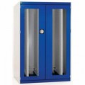 Dílenské skříně se čtyřmi výsuvnými oboustrannými perforovanými panely s plnovýsuvy pro flexibilní zavěšení nářadí. Panely s dostatečným 20,1 cm širokým rozestupem pro zavěšení nářadí a systémem blokace vysunutí více panelů najednou Panely v provedení pro umístění držáků nářadí (typ perfo), nebo pro zavěšení plastových boxů (typ louvre). Svařovaná ocelová konstrukce, povrchová úprava práškovým lakem. Vyztužené křídlové dveře s průhledy s tříbodovým cylindrickým rozvorovým zámkem se dvěma klíči.Dílenské skříně Bott Cubio s výsuvnými perfopanely, průhledné dveře