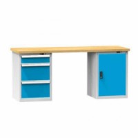 Pracovní stoly KOMBI jsou nejžádanější sestavy stolů kombinovaných ze stavebnicových nábytkových dílů. Pracovní stoly nabízíme v předdefinovaních sestavách pro každý typ v několika šířkách i hloubkách. KOMBI stoly se sestavují z pracovní desky, nohy pracovního stolu (nabízíme několik variant) nebo zásuvkové skříně, které mohou být na obou stranách stolu. Nohy je možné opatřit kolečky nebo elektro vybavením. Pracovní prostor mnohonásobně rozšíříte díky nástavbě pracovního stolu a širokému příslušenství.Dílenské stoly KOMBI LM4725, 2500 x 700 x 880 mm, MULTIPLEX
