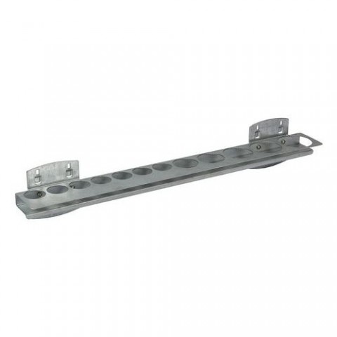 Držáky z galvanického plechu a drátu pr. 5 mm jsou určené maximálně pro třináct nástrčných hlavic 1/2. Jsou opatřeny plastovou pojistkou proti vypadnutí z perforovaného panelu. délka: 40 cm materiál: galvanicky pozinkovaný plech a drát pr. 5 mm barva: stříbrná balení: 5 ks vhodné pro panely s roztečí 38 mm, plastová pojistka proti vypadnutí držáku, vhodné do rastrových panelů s pravoúhlými otvory 10 x 10 mm, určeno maximálně pro 13 hlavicDržáky na nástrčné hlavice 1/2
