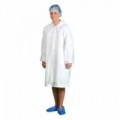 Jednorázový laboratorní plášť se zapínáním na patentky. Dlouhé rukávy dobře chrání oblečení před znečištěním. Má tři kapsy, jednu na hrudi a dvě dole. Klasický límec.Jednorázové laboratorní pláště Tyvek