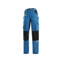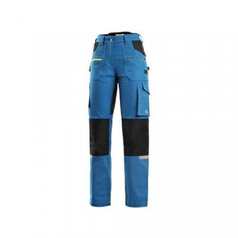 Dámské montérkové kalhoty, strečová tkanina umožňující volný pohyb, pas s poutky na opasek, přední kapsy s kapsou na zip, multifunkční kapsy na obou stranách, kolena zesílena 600D polyesterem, dvě zadní kapsy - jedna s klopou, zadní spodní lem nohavi Velikost: 38-58 Reflexní doplňky: AnoKalhoty CXS STRETCH, dámské, středně modro-černé