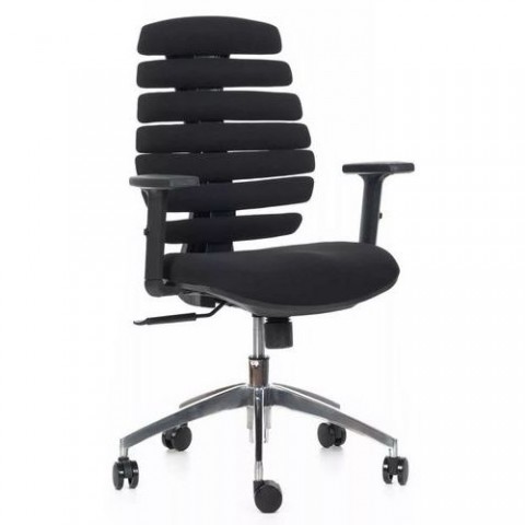 Kancelářská židle FISH 2 je vhodná pro osmihodinové sezení. Elegantní černá konstrukce židle s opěrákem ve stylu rybích kostí ihned upoutá pozornost. Ideální pro uživatele s výškou postavy 155 - 185 cm a hmotností do 110 kg. Měkký sedák z nové pěny se dokonale přizpůsobí tvaru těla a ergonomicky tvarované opěradlo poskytne zádům úlevnou podporu. Synchronní houpací mechanismus s aretací v několika polohách sladí pohyb vašeho těla a židle, takže se lépe ponoříte do své aktuální činnosti. Možnost nastavení tuhosti houpání. Součástí židle jsou výškově stavitelné područky. Konstrukce židle FISH 2 stojí na pětiramenném kovovém kříži. Kolečka jsou univerzální, vhodná pro různé typy podlah.Kancelářská židle FISH 2, černá