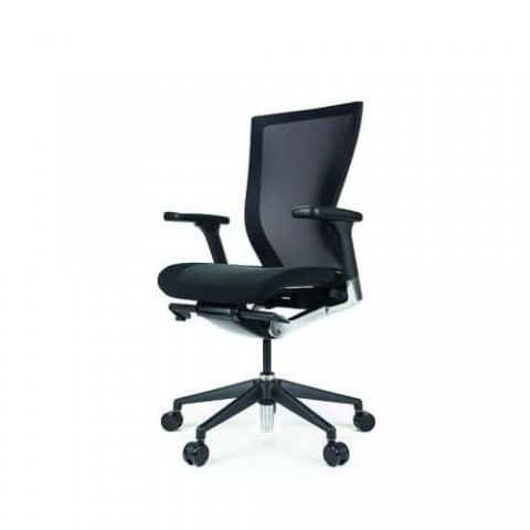 Kancelářská černá židle se synchronizovaným nakláněním opěradla. Nastavení tuhosti, sklonu, hloubky a výšky sedáku s čalouněním. Síťované opěradlo zajišťuje vzdušnost při sezení. Zakřivení zádové části je ergonomicky tvarované a uzpůsobené pro práci v kanceláři. Včetně bederní opěrky. Výškově stavitelné područky s posunem vpřed a vzad. Plynový píst, stabilní plastový černý kříž s pěti kolečky.Kancelářská židle Sidiz