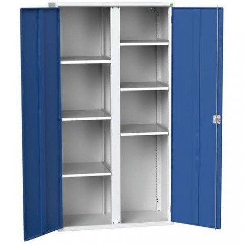 Kovové skříně pro specifické použití v provozech - podle typu vybaveny policemi, zásuvkami, středovou přepážkou nebo i tyčí na ramínka. Pozinkované police s nosnsostí 75 kg, výškově nastavitelné v rastru 25 mm. Zásuvky s nosností 75 kg a 100% výsuvem na válečkových ložiskách. Svařovaná ocelová konstrukce, povrchová úprava práškovým lakem. Vyztužené křídlové dveře s tříbodovým cylindrickým rozvorovým zámkem se dvěma klíči.Kovové skříně pro údržbu Bott Verso, výška 200 cm