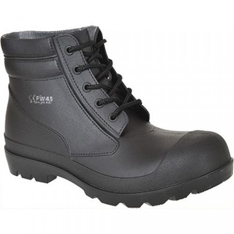 Nová bezpečnostní obuv řady PVC S5 která nabízí nejvyšší stupeň odolnosti proti uklouznutí a poskytuje maximální ochranu uživatele v náročných podmínkách. Antistatická obuv CE certifikace Energii absorbující oblast paty Podešev odolná proti olejům Protiskluzová podešev (SRA) Ocelový plátek Voděodolné Ocelová tužinka 200 Joule Ocelová stélka odolná proti propíchnutíObuv PVC S5, černá