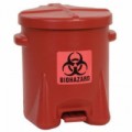 Kontejnery na biohazardní odpad jsou vyrobeny z červeného polyethylenu vysoké hustoty (HDPE) a nabízejí řešení pro dočasné skladování výrobků s potenciálním biohazardem. Nálepka BIOHAZARDOUS na přední straně informuje pracovníky o potenciálním biologickém nebezpečí. Splňuje požadavky OSHA na expozici krevním patogenům. Nerazí, nepromáčkne se, odolává většině chemikálií. Bezšvová, vodotěsná konstrukce. Samozavírací víko s nožním pedálem.Plastové koše na nebezpečný odpad