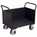 Manipulační vozíky s vysokou nosností, pevnou ocelovou konstrukcí a čtyřmi stěnami včetně dvou madel. Stěny a ložná plocha jsou vyrobeny z voděodolné překližky v černé barvě. Pohyb zajišťují čtyři kola s valivými kuličkovými ložisky, z nichž dvě jsou pevná a dvě otočná s brzdou Easy Stop.Plošinové vozíky se dvěma madly s plnou výplní a bočními stěnami, do 1 000 kg