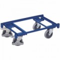 Kovový Euro vozík na plastové přepravky o rozměru 600 x 400 mm. Bez ložné plochy. Čtyři otočná kola, z nichž dvě jsou opatřená brzdou EasySTOP. Šedá kola z termoplastické pryže nezanechávající stopy na plastovém ráfku s přesnými kuličkovými ložisky, ochrana nohou.Vozíky na přepravky, 67,5 x 41,5 x 23,5 cm