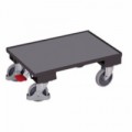 Transportní plošina vhodná pro umístění přepravek o rozměru 600 x 400 mm. Ložná plocha z MDF desky, okraj 10 mm. Čtyři otočná kola, z nichž dvě jsou opatřená brzdou. Šedá kola z termoplastické pryže nezanechávající stopy na plastovém ráfku s přesnými kuličkovými ložisky, ochrana nohou.Transportní plošiny, do 250 kg, 10mm hrana, 61 x 41,5 x 20,5 cm