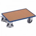Přepravní plošiny s ocelovou konstrukcí a ložnou plochou z MDF v dezénu buk a šedá. Pohyb zajišťují čtyři kola s valivými kuličkovými ložisky, z nichž dvě jsou pevná a dvě otočná s brzdou Easy Stop.Přepravní plošiny, do 400 - 500 kg