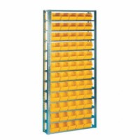 Stacionární policový regál s plastovými boxy Unibox má přestavitelné police v rastru 4 cm. Konstrukce stojanu a police jsou pozinkované. Dodáváno v rozloženém stavu, spojovací materiál přiložen.Policový regál s boxy Unibox (60 ks)