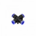 Pro připojení flexibilních pneumatických hadic Automatické blokování, když je hadice zasunuta do konektoru Odblokování po stisknutí modrého kroužku Typ: čtyřdílný Otvor pro hadici: 12mm Materiál: polyuretan, polyethylenAutomatická hadicová spojka PU/PE kříž 12mm GEKO