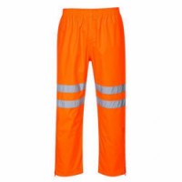 Reflexní kalhoty do práce v železničním průmyslu. Nepromokavé, prodyšné s lepenými švy, plně elastický pás, zip u kotníků pro snadné nasazení obuvi. Tkanina odráží 98 % UV záření (UPF 50+), vodní sloupec 10 000 mm. Materiál 100% polyester, PU zátěr 190 g. Splňují normy RIS-3279-TOM ISSUE 1; EN 343:2019 Třída 4:3 X WP 10,000 mm, MVP 10,000g/m2/24hrs; EN ISO 20471 Třída 2.Reflexní kalhoty Tommy Hi-Vis, oranžové