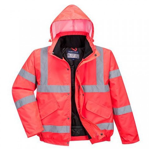 Hi-Vis bomber bunda v pohodlném provedení s reflexními pruhy. Čtyři kapsy pro ukládání věcí, celozateplené provedení, dvoucestný zip. Kapuce v límci, fleecový límec, lepené švy. Tkanina odráží 98 % UV záření (50+ UPF), vodní sloupec 15 000 mm. Vnější tkanina 100% polyester, PU zátěr 190 g, podšívka 100% polyester 60 g, výplň 100% polyester 170 g. Splňuje normy ANSI/ISEA 107-2015 TYPE R Třída 3; AS/NZS 4602.1:2011 Třída D/N; EN 343:2019 Třída 3:1 X WP 15,000 mm; EN 342 0.336 (M2.K/W), 2, X; EN ISO 20471 Třída 3.Reflexní nepromokavá bunda bomber Rocket Hi-Vis, červená
