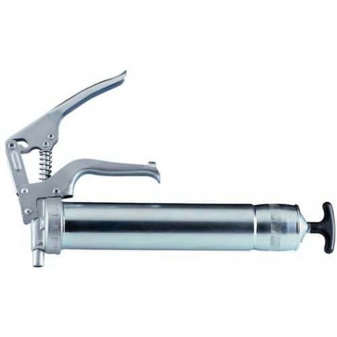 Používejte s kartuší nebo objemovým mazivem. Rukojeť se 2 polohami (objem a tlak). Umožňuje odblokovat ucpaný mazací stroj. Pistole s křídlovou maticí pro utahování bez použití nářadí.Ruční mazací lis Umeta