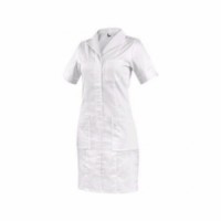 Dámské šaty s krátkým rukávem, vpředu i vzadu tvarovány princesovým švem, u krku pohodlná rozhalenka, délka ke kolenům, kryté zapínání na baby druky, náprsní kapsa vlevo, 2 spodní kapsy nakládané kapsy s volným spodním okrajem. Doporučené použití: wellness, kosmetické salóny, soukromé ordinace, kliniky a velká zdravotnická zařízení, lázeňská zařízení, ústavy sociální péče, lékárny, školy se zdravotnickým zaměřením. Velikost: 38-58 Normy: EN ISO 13688 Svrchní materiál: 62 % bavlna 35 % polyester 3 % elastan Obor: Zdravotnictví Obor: Ostatní službyŠaty CXS BELLA, dámské, bílé