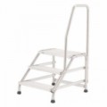 Profesionální pojízdný stupínek odolný proti nárazům a poškrábání. Má vysokou stabilitu díky výsuvným kolečkům. Schůdky pokryté protiskluzovým gumovým povrchem. Ideální stupínek, který odolává deformacím.Plastová mobilní stupátka Novap, 2 stupně