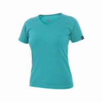 Dámské tričko s průkrčníkem do V. Krátký rukáv raglánového typu. Střih zvýrazňující dámskou postavu a elastan pro pružnost a dlouhodobé udržení tvaru. Finální silikonová úprava materiálu, která zajišťuje vyšší měkkost, rozměrovou stálost a omezuje žmolkovatění. Saténová etiketa. Vhodné pro potisk a výšivku. Velikost: XS-XXLTričko ELLA, dámské, tyrkysové