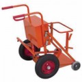 Venkovní úklidový vozík s pevnou ocelovou konstrukcí. Vybaven držákem na odpadkové pytle, 4 odkladácí trubice na pracovní náčiní - lopata, smeták apod. Opatřen dvěma otočnými koly o průměru 260 mm a držákem pro snadnější manipulaci. Pytel o objemu 120 l. 1 odkládací přihrádka na náhradní pytle či menší nářadí.Venkovní úklidový vozík Feng