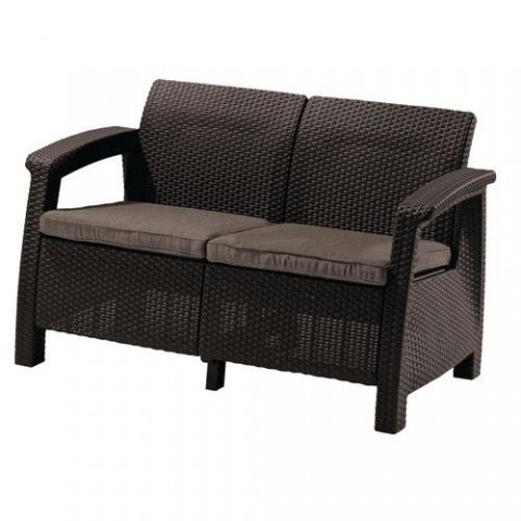 Zahradní sofa pro 2 osoby. Vhodná jak do interiéru, tak do exteriéru. Vyrobena z odolného plastu. Snadno omyvatelná a udržovatelná. Hmotnost pohovky je 11,67 kg.Venkovní pohovky Corfu Love Seat