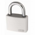 Hliníkové tělo visacího zámku kryté plastovým pláštěm. Lze popisovat permanentním fixem. Inkoust lze vymazat jednoduchým otřením.Hliníkové visací zámky Abus T65