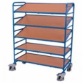 Vozík s dvanácti plastovými přepravkami a kovovou konstrukci. Součástí je psací deska o rozměrech 30 x 40 cm. Rozměry přepravek jsou 41 x 25 x14 cm. Pohyb zajišťují čtyři otočná kola s valivými jehlovými ložisky. Povrchová úprava práškovým lakem.Vozík s 12 přepravkami