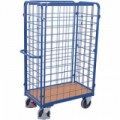 Vysoké policové vozíky s jednou spodní policí vhodné do skladů pro přepravu materiálu a zboží. Police je vyrobená z MDF desky. Vozíky jsou opatřené mřížovými bočnicemi s oky velikosti 12 x 12 cm. Pohyb zajišťují čtyři kola s valivými kuličkovými ložisky, z nichž dvě jsou pevná a dvě otočná s brzdou Easy Stop a ochrannými kryty. Možnost vložení dalších polic stavitelných v rastru 12 cm.Vysoké policové vozíky se 3 mřížovými bočnicemi, do 400 - 500 kg, 1 police