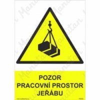 Bezpečnostní značení tabulkou, značkou nebo samolepkou "Pozor - Pracovní prostor jeřábu" tiskneme na vysoce kvalitním materiálu, barvami s vysokou odolností proti otěru a UV záření. Tím zajišťujeme splnění požadavků Nařízení vlády č. 375/2017 Sb., ČSN ISO 3864-1, ČSN ISO 3864-2, ČSN ISO 3864-3, ČSN ISO 3864-4. Tyto tabulky musí být umístěny tak, aby zavčas upozornily na pracovní prostor jeřábu, v němž hrozí nebezpečí úrazu způsobené provozem jeřábu. Tyto tabulky mohou být, podle situace, vyvěšovány jen na přechodnou dobu. Pomine-li důvod jejich vyvěšení musí se odstranit! Text doplňkové značky tabulky je možno, podle konkrétních podmínek, upravit (upřesnit) nebo změnit. Bezpečnostní výstražné tabulky "POZOR! PRACOVNÍ PROSTOR JEŘÁBU" jsou určeny zejména pro upozornění na nebezpečná místa v nichž dochází k provozu jeřábu."Výstražné tabulky - Pozor pracovní prostor jeřábu