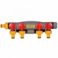 Čtyřcestný ventil s nastavitelným průtokem. Vytvoření čtyř okruhů jedním klepnutím. Montáž na zeď je rovněž možná. Dodáváno se dvěma hadicovými spojkami a nástěnnými úchyty. Čtyřokruhový konektor přemění kohoutek s jedním závitem na čtyři kohoutky, každý s vlastní regulací průtoku. Lze jej také použít k připojení dvou zavlažovacích časovačů k jednomu kohoutku.Čtyřcestný ventil - Hozelock