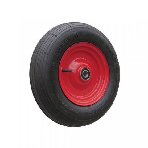 Bantamové nafukovací kolo s kovovým diskem české výroby, kuličkovými ložisky a PROFI duší. Vhodné pro standardní vozíky, stavební kolečka s osou 20 mm. materiál kola: guma průměr kola: 400 mm šířka kola: 100 mm nosnost: 200 kg způsob uchycení: bočním otvorem průměr bočního otvoru: 20 mm délka náboje: 74 mm dezén: podélné drážky ložiska: kuličkováBantamové kolo, 400 mm, kuličková ložiska