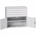 Zásuvkové skříně Bott Cubio se zásuvkami s nosností 75 kg a 100% výsuvy na válečkových ložiskách. Dvířka skříňky s perforovanou vnitřní stranou pro uložení nářadí. Robustní svařovaná ocelová konstrukce s nosností až 1,5 tuny, povrchová úprava práškovým lakem. Systém centrálního zámku i blokace otevření více zásuvek najednou. Ergonomické rukojeti s popisovatelnou lištou, uzamykání cylindrickým zámkem se dvěma klíči.Dílenské zásuvkové skříně Bott Cubio, 100 x 65 x 52,5-75 cm, 4 zásuvky, 1 skříňka