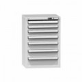 Zásuvkové skříně z kvalitních ocelových plechů. Skříň disponuje sedmi zásuvkami s mechanismem centrálního zamykání a blokací. Standardně jsou zásuvkové skříně osazeny cylindrickými zámky, ke každému zámku jsou dodávány dva klíče. K dostání ve 3 barevných odstínech.Dílenské zásuvkové skříně ZN, 7 zásuvek, 840 x 578 x 464 mm, šedá