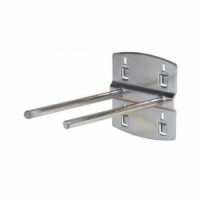 Dvojité držáky na nářadí z pozinkovaného plechu a drátu pr. 5 mm mají úhel zahnutí 0°. Součástí jsou plastové pojistky proti vypadnutí držáků z perforovaného panelu.Háčky na nářadí, dvojité, 0 °