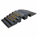Rohový přejezd s horním víkem k ochraně kabelů, hadic a trubek, které je nutné vést přes vozovku. Vhodné k použití ve výrobních provozech, pozemních komunikacích, při pořádání kulturních akcí a podobně. Spojení jednotlivých dílů pomocí jednoduchých zámků na konci mostu. barva: černá, žlutá v x š x h: 60 x 770 x 730 mm rozměry otvorů: 35 x 35 mm (4 x); 40 x 35 mm (1 x) počet otvorů: 5 nosnost: 7 000 kg hmotnost: 24 kg špatná hořlavost, protiskluzový povrchKabelové mosty s krytem, rohové, levé provedení