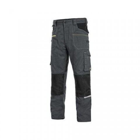 Pánské montérkové kalhoty, strečová tkanina umožňující volný pohyb, pas s poutky na opasek, přední kapsy s kapsou na zip, multifunkční kapsy na obou stranách, kolena zesílena 600D polyesterem s možností vložení kolenních výztuh, dvě zadní kapsy - jedna s klopou, zadní spodní lem nohavice vyztužen 600D polyesterem, reflexní doplňky. Doporučené použití: strojírenství, stavebnictví, lehký průmysl, automobilový průmysl, logistika, skladová manipulace, spedice, autoservisy, údržba, montáže, zemědělství, zahrada, hobby. Velikost: 46-64 Svrchní materiál: 98% bavlna 2% elastan Reflexní doplňky: Ano OEKO-TEX® STANDARD 100: Ano EASY-PROLONG systém: AnoKalhoty CXS STRETCH, pánské, tmavě šedo-černá