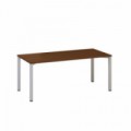 Kancelářské stoly v moderním designu. Deska stolu z laminované dřevotřísky tl. 25 mm a ABS hranami 2 mm. Čtyřnohé podnoží s ocelovou konstrukcí do kříže ošetřené práškovou barvou, jehož bočnice jsou spojeny hliníkovými profily, podpírají desku stolu a přináší tuhost stolu. Dezén desky z divoké hrušky, třešně, buku, ořechu nebo bílé barvy. Dodáváno v demontovaném stavu.Rovné kancelářské stoly Alfa 200, 180 x 80 x 74,2 cm, rovné provedení