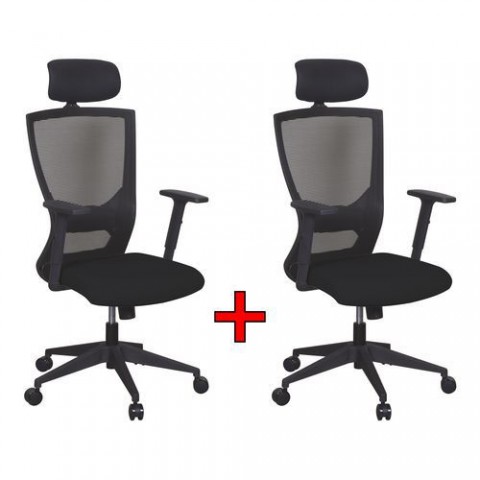 Kancelářské židle jsou opatřeny anatomicky tvarovaným síťovaným opěrákem, textilním sedákem, plynovým pístem a plastovým křížem. Synchronní mechanismus lze zafixovat v několika různých polohách. Možnost nastavení síly protiváhy, výšky sedáku a výšky područek. Rozměry židle jsou: (v x š x h): 119 - 126 x 63 x 57 cm.Kancelářská židle Jenny – výhodné balení 2 ks