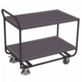 Policový vozík s ergonomicky tvarovaným madlem pro snadnou manipulaci. Police z MDF desek jsou uloženy ve výšce 185 mm a 770 mm. Dvě pevná a dvě otočná kola jsou vyrobená z nešpinivé gumy.Policové vozíky s madlem, do 200 kg, 2 police, 91 x 94 x 45,5 cm