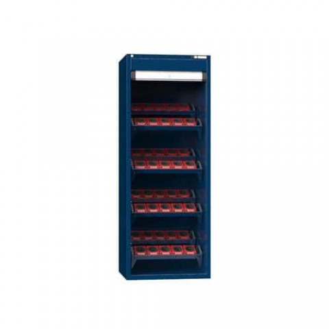 NC skříně jsou opatřeny dvojitými stěnami s perforací pro zavěšení polic, nosičů, nástrojových rámů a zásuvek. V případě vybavení skříne zásuvkami je standardně, z důvodu bezpečnosti (nebezpečí převrácení), dodávána blokace proti vysunutí více zásuvek. Korpus skříně se uzavírá hliníkovou roletou světle šedé barvy RAL 7035 s rozvorovým zámkem. Standardní výbavou je systém identifikace otvorů a popisový štítek s funkcí chytrý nábytek. Do skříní je možné zavěšovat zásuvky s půdorysem ZD (36x27).NC skříně s roletou 36x27D s vybavením, var. 4