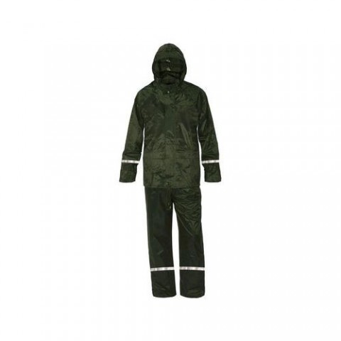 Voděodolný oblek skládající se z kalhot v pase do gumy a blůzy s kapucí v límci. Velmi lehké provedení se zapínáním na zip, vše v praktickém balení.Nepromokavá pogumovaná souprava CXS, zelená