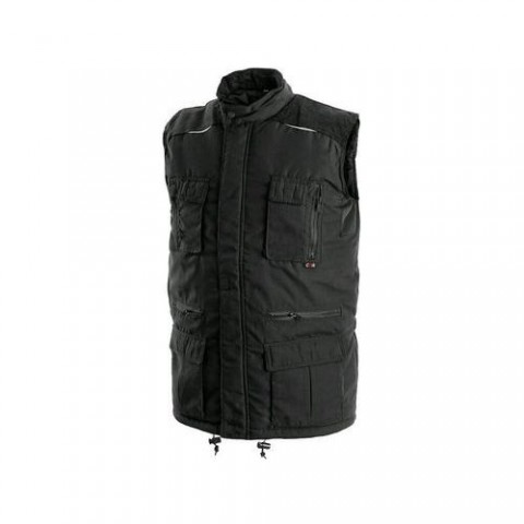 Černá zateplená pracovní vesta s rameny a límcem prošité manšestrem. Vesta má 14 kapes, z toho tři vnitřní. Možnost stažení vesty v pase. velikost: M, L, XL, XXL, XXXL provedení: pánské materiál: 65% polyester, 35% bavlna, výplň a podšívka 100% polyester barva: černáPánská zimní vesta CXS Ohio, černá