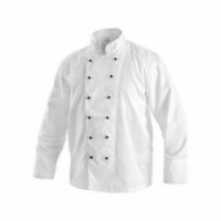 Bílý kuchařský rondon s dlouhým rukávem a zapínáním ve dvou řadách. velikost: 42 - 64 provedení: pánské materiál: 100% bavlna, kepr gramáž: 190 g/m2 barva: bílá certifikace: EN ISO 13688Pánský kuchařský rondon dvouřadý