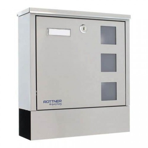 Poštovní schránky s průsvitnými okénky pro rychlý přehled o obsahu schránky. Horní vhoz na dopisy do rozměru A4, samostatná přihrádka na noviny. Štítek pro umístění jmenovky. Uzamykatelná přední dvířka na cylindrický zámek. Odolnost vůči povětrnostním vlivům umožňuje umístění v interiéru i exteriéru. Předvrtané otvory na zadní straně pro připevnění ke zdi.Poštovní schránky Rottner Lago