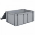 Připevněné odklápěcí víko pro snadnější otevírání a zavírání. Zboží je zajištěno díky těsnicím otvorům. Žebrovaná konstrukce s integrovanými úchyty pro vyšší odolnost proti zatížení. Kompatibilní s evropskými standardními modely.Plastové Euro přepravky s víkem