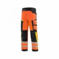 Pánské výstražné kalhoty, pas s poutky na opasek a gumou v bocích, 2 přední kapsy, 2 zadní kapsy, jedna s klopou, kryté přední zapínání na zip, boční multifunkční kapsy, stehenní zipová kapsa s vnitřním pouzdrem na ID kartu, kolena zesílena materiálem CORDURA s možností vložení kolenních výztuh, spodní část nohavic vyztužena materiálem CORDURA, segmentované reflexní pásky (šíře 7 cm), kontrastní žluté/oranžové a reflexní doplňky. Doporučené použití: stavebnictví, silničáři, údržba, logistika, letecká a lodní doprava. Velikost: 48-60 Svrchní materiál: Základní materiál: satén 60 % bavlna 40 % polyester, Doplňkový materiál: kepr 60 % bavlna 40 % polyester Reflexní doplňky: Ano OEKO-TEX® STANDARD 100: AnoKalhoty CXS BENSON výstražné, pánské, oranžovo-černé