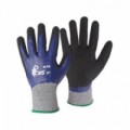 Protipořezové pracovní rukavice s nejvyšší odolností proti řezu 5. Vrstva nitrilu pokrývá dlaň a prsty. Upletené z polyethylenového vlákna UHMWPE.Polyetylenové rukavice CXS Rita polomáčené v nitrilu, černé/modré