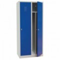 Šatní skříň svařovaná z ocelového plechu tloušťky 0,7 mm. Každý oddíl je vertikálně rozdělen mezistěnou umožňující odložení čistých a špinavých oděvů. Každý oddíl je vybaven tyčí na ramínka a dvěma háčky. Uzamykání jednobodovým cylindrickým zámkem se dvěma klíči. Perforovaná dvířka zajišťují účinné odvětrávání vnitřního prostoru, možnost umístění štítku se jménem.Svařované šatní skříně Vinco s mezistěnou, 2 oddíly, 400 mm, cylindrický zámek