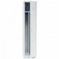 Montovaná kovová skříň na čisté a špinavé prádlo s vnitřním dělením mezistěnou. Křídlové dveře jsou zavěšené na vnitřních pantech a lze je otevřít až o 115 °. Tiché dovírání díky plastovým dorazům. Možnost umístění jmenovky do štítku na dveřích. Kryté perforované otvory v horní části dveří zajišťují cirkulaci vzduchu. Odkládací polička ve vrchní části skříně, tyč se dvěma háčky pro zavěšení oděvů. Celokovová konstrukce z ocelového plechu tl. 0,6 mm. Skříň je umístěná na vyvýšeném soklu. Uzamykání pomocí cylindrického zámku (dodáváno se 2 klíči) nebo otočným uzávěrem v kombinaci s visacím zámkem (výška třměnu 40 mm, průměr tměnu 6 mm).Montované šatní skříně s mezistěnou Manutan Expert IS, 1 oddíl